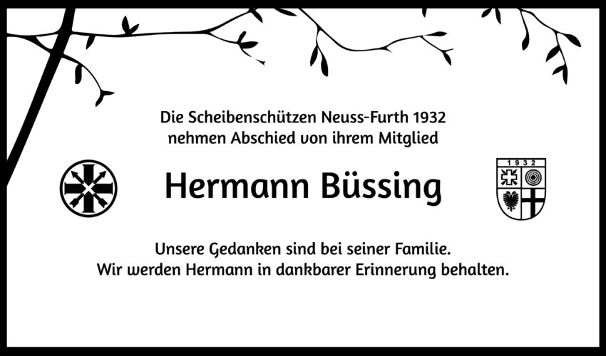 Mit großer Trauer nehmen wir Abschied von unserem langjährigen Vereinsmitglied Hermann Büssing, der heute Morgen verstorben ist. Er ist friedlich eingeschlafen.